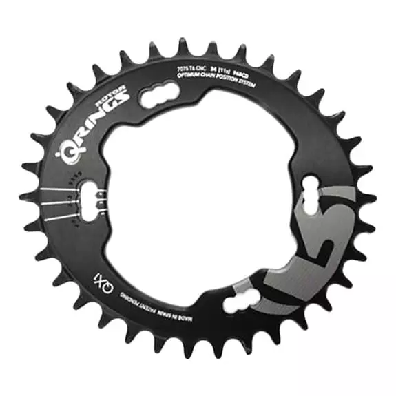 La corona Rotor QX1 XTR BCD 96 per le biciclette MTB ha un’ovalizzazione del 12.5%. Ha un’alternanza di denti stretti e larghi per evitare che la catena salti nelle condizioni più avverse anche senza deragliatore. Le corone ovali Q-Ring danno una spinta al tuo rendimento per modificare la resistenza alla pedalata, a seconda della forza e della debolezza naturali delle gambe. Sfruttano al meglio i gruppi muscolari più forti (aumentando il lavoro positivo) e compensano le zone più deboli della pedalata (riducendo la forza negativa).