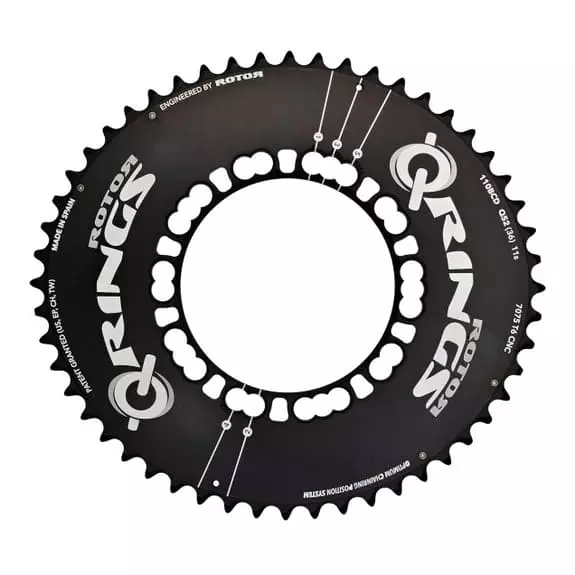 La corona Rotor QRings BCD 110 Aero esterna per biciclette da corsa ha un’ovalizzazione del 10%. Le corone ovali QRings hanno un spinta al tuo rendimento, modificando la resistenza alla pedalata a seconda della forza e della debolezza naturali delle gambe. Ottimizzano l’uso dei gruppi muscolari più forti (aumentando il lavoro positivo) e compensano le zone più deboli della pedalata (riducendo la forza negativa).