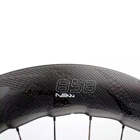 La ruota Zipp 858 NSW Carbon per freno a disco con la strutta del cerchio ondulante Sawtooth con ABLC HexFin e HyperFoils, tecnologia che aiuta a dare stabilità alla bici in presenza di vento. Questo permette al ciclista di non dovere combattere contro il vento per mantenere la postura retta e poter concentrarsi con energia sui pedali e mantenere la posizione aerodinamica. Dopo tre anni di ricerca, il risultato è Sawtooth: una forma del cerchione che offre efficienza aerodinamica e stabilità con vento laterale. Costruito per resistere all’uso nell’addestramento quotidiano. Zipp ha raggiunto questa affidabilità con un peso più leggero grazie ad un design rivisto in fibra di carbonio sviluppato attraverso test sui famosi ciottoli della foresta di Arenberg con i corridori più veloci del mondo.
