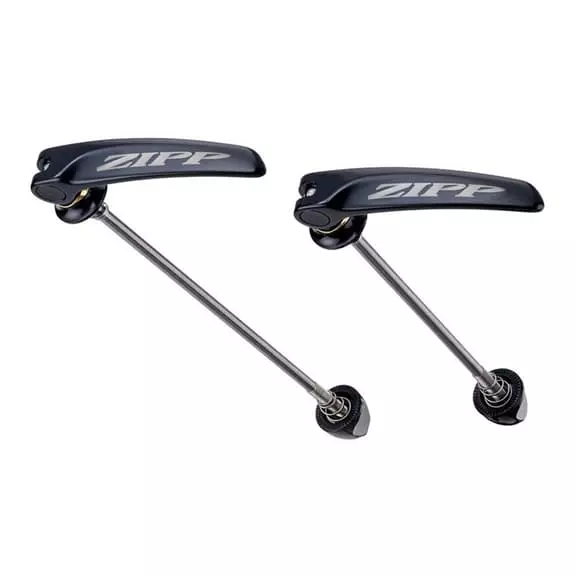 Bloccaggi a sgancio rapido Zipp QR acciaio 100/135 realizzati in acciaio. Questi bloccaggi permettono uno sgancio rapido e una chiusura facile e sicura.