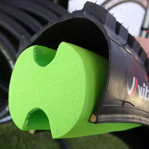 È un elemento in polimero di alta qualità che occupa il volume interno del pneumatico. Con le sue caratteristiche e la sua forma offre un comfort progressivo. Agisce anche con l’aria restante all’interno del pneumatico, assorbe gli impatti proprio come un sistema di sospensione. Protegge tanto la gomma quanto la ruota, cosa che una sospensione tradizionale non fa.