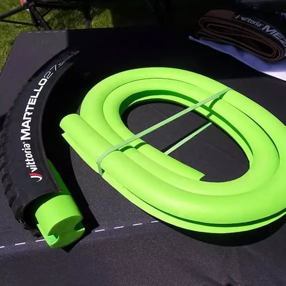Air-Liner è ideato con una sezione trasversale rotonda e scanalature nella parte superiore e inferiore. Quella superiore lascia spazio per l’aria che resta direttamente sotto al battistrada. Quando si presenta un impatto, i bordi delle scanalature si piegano prima sulla parte più spessa di Air-Liner mano a mano che la gomma si comprime. Questo permette al battistrada di rimanere flessibile e quindi aumenta la trazione, senza perdere resistenza. La scanalatura inferiore, invece, consente un facile assetto della camera d’aria ed è compatibile con tutti i tipi di valvola.