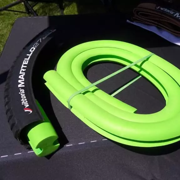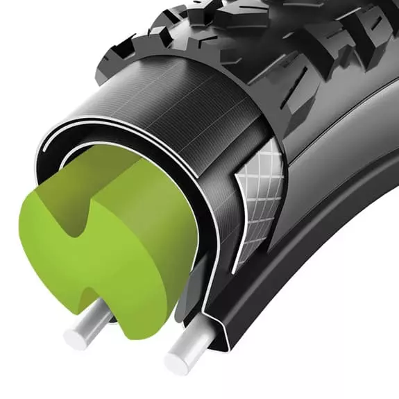 È un elemento in polimero di alta qualità che occupa il volume interno del pneumatico. Con le sue caratteristiche e la sua forma offre un comfort progressivo. Agisce anche con l’aria restante all’interno del pneumatico, assorbe gli impatti proprio come un sistema di sospensione. Protegge tanto la gomma quanto la ruota, cosa che una sospensione tradizionale non fa.